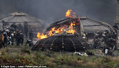 Nessa semana, novas imagens do set (via site Mail Online) surgiram na rede, e que mostram a atriz Jaimie Alexander - intérprete de Lady Sif - e asgardianos enfrentando criaturas misteriosas durante cenas de batalha.